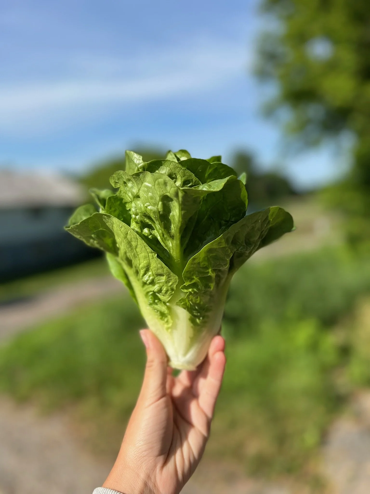 Feuilles de sucrines, une variété de laitues de type mini-romaine. Parfaites pour les salades César!